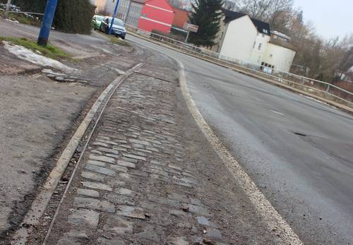 Von den alten Gleisanlagen ist tatsächlich nicht mehr viel zu sehen. Aber es gibt sie noch am Hersdorfplatz, wenn man einmal genau hinschaut. Vermutlich werden sie bei einer der nächsten grundlegende Straßensanierungen verschwinden. Nicht verschwinden wird jedoch die Erinnerung an die Gothaer Linie 3.