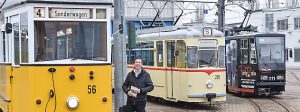 Gotha. Hochzeitsgesellschaften, Vereine, Sportmannschaften, Fanclubs und Reisegruppen fahren schon seit langem mit den Traditionszügen der Thüringer Wald- und Straßenbahn meist bis in den Thüringer Wald. Jens Rönnpagel freut sich auf das gemischte Publikum zu den Sonderfahrten mit historischen Bahnen nach Tabarz. Foto: Peter Riecke