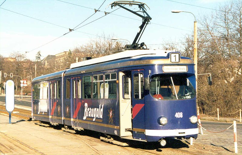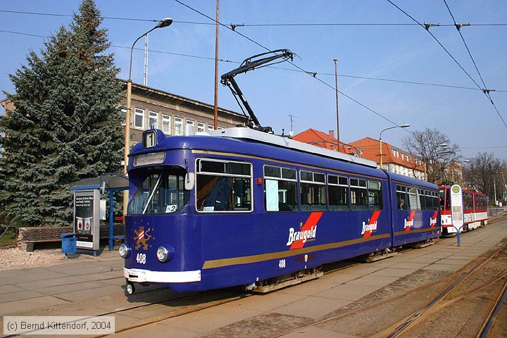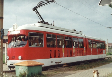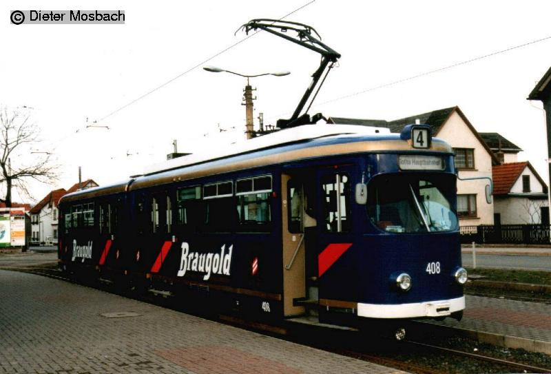Ehemaliger Triebwagen 408 der Mannheimer Verkehrsbetriebe. In 2006 verschrottet.