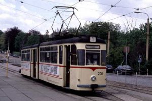 Kurzbeschreibung Nummer: 208 Typ: G4-67, 2+2xGlTwER, Stadtausführung Hersteller: VEB Gotha Baujahr: 1967 Farbe: beige Verbleib: Verschrottet 1996