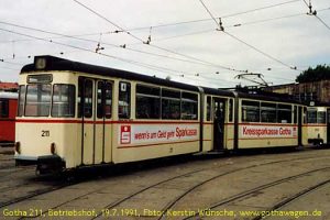 Kurzbeschreibung Nummer: 211 Typ: G4-67, 2+2xGlTwER, Überlandausführung Hersteller: VEB Gotha Baujahr: 1967 Farbe: beige Verbleib: Verschrottet 1992