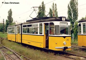 Kurzbeschreibung Nummer: 216 Typ: G4-67, 2+2xGlTwER, Überlandausführung Hersteller: VEB Gotha Baujahr: 1967 Farbe: gelb-weiß Verbleib: Verschrottet 1994