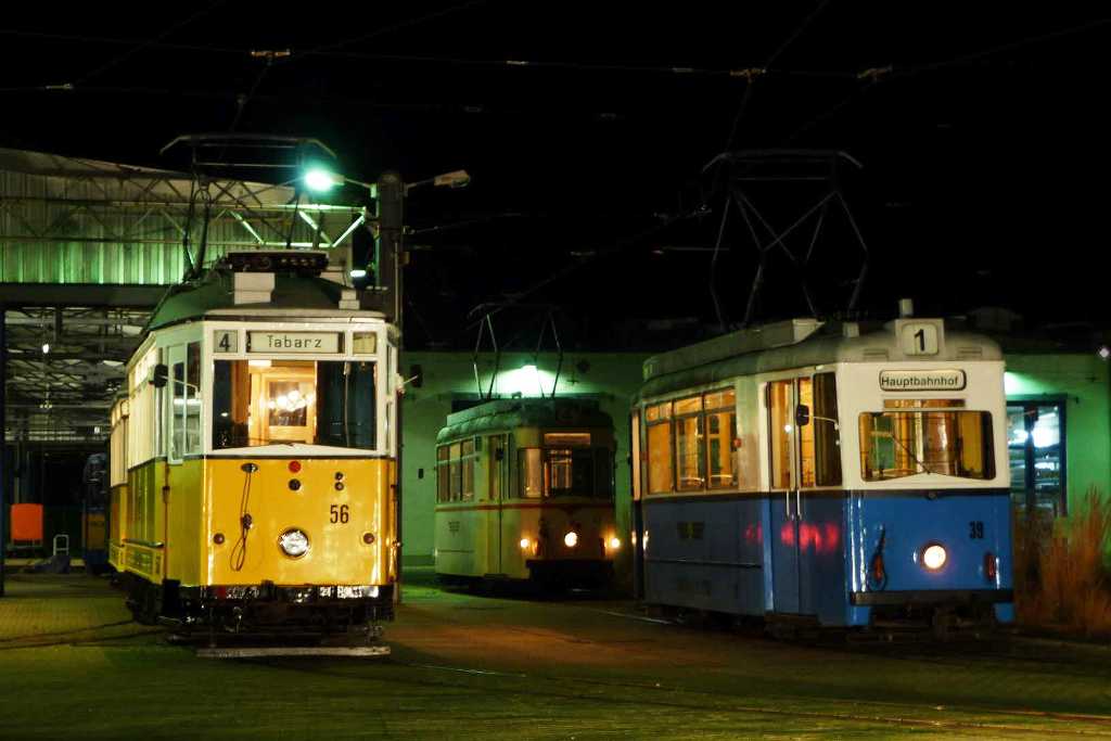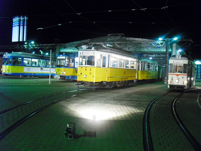 Betriebshof bei Nacht: Tw 306, hist. Zug 56-82-101, HTw 39, ATw 47, 30.09.2011 (C) Schneider