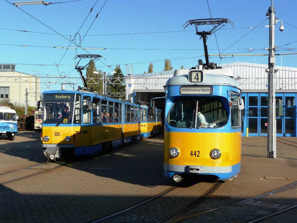 KT4D-Traktion 305+302, Tw 442, Betriebshof, 01.10.2011, (c) Quaß