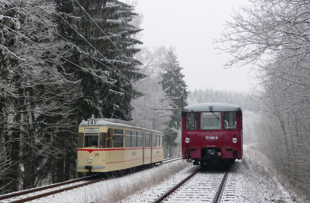 Tw 215 und EBS 772 345 kurz vor Reinhardsbrunn Bf., 25.01.2014, (C) Schneider