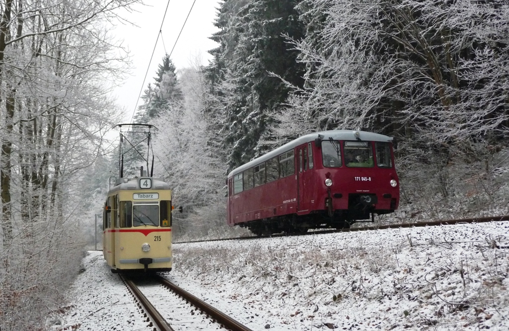 Tw 215 und EBS 772 345 zwischen Reinhardsbrunn und Schnepfenthal, 25.01.2014 (1), (C) Quaß
