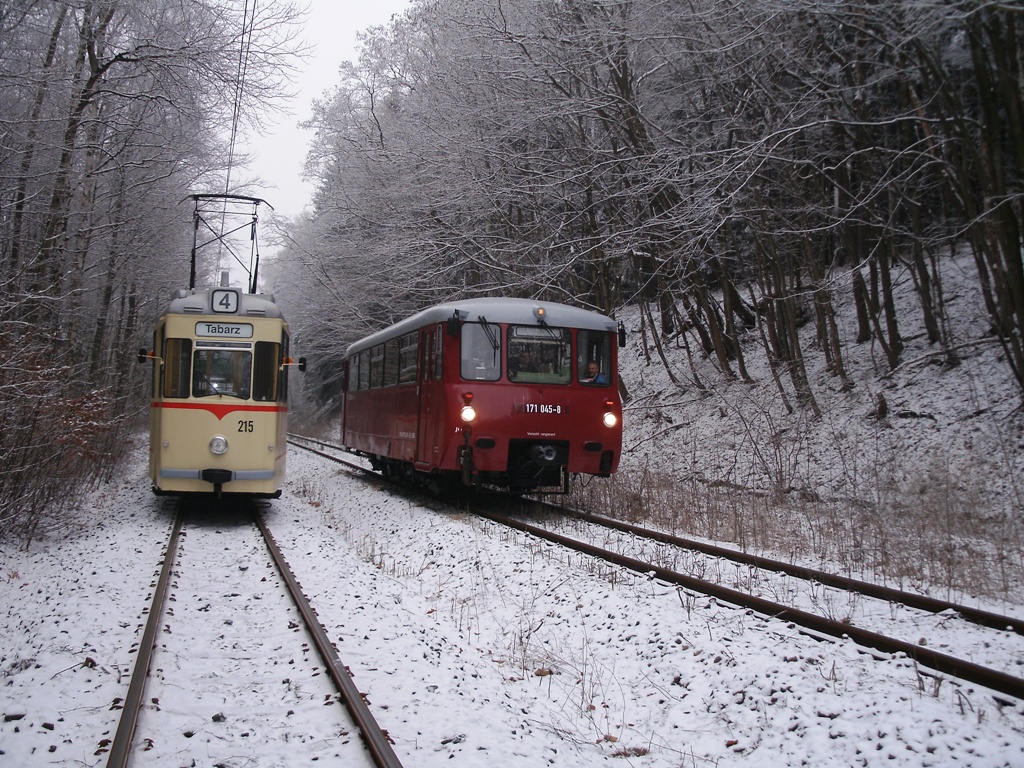 Tw 215 und EBS 772 345 zwischen Reinhardsbrunn und Schnepfenthal, 25.01.2014 (2), (C) Quaß