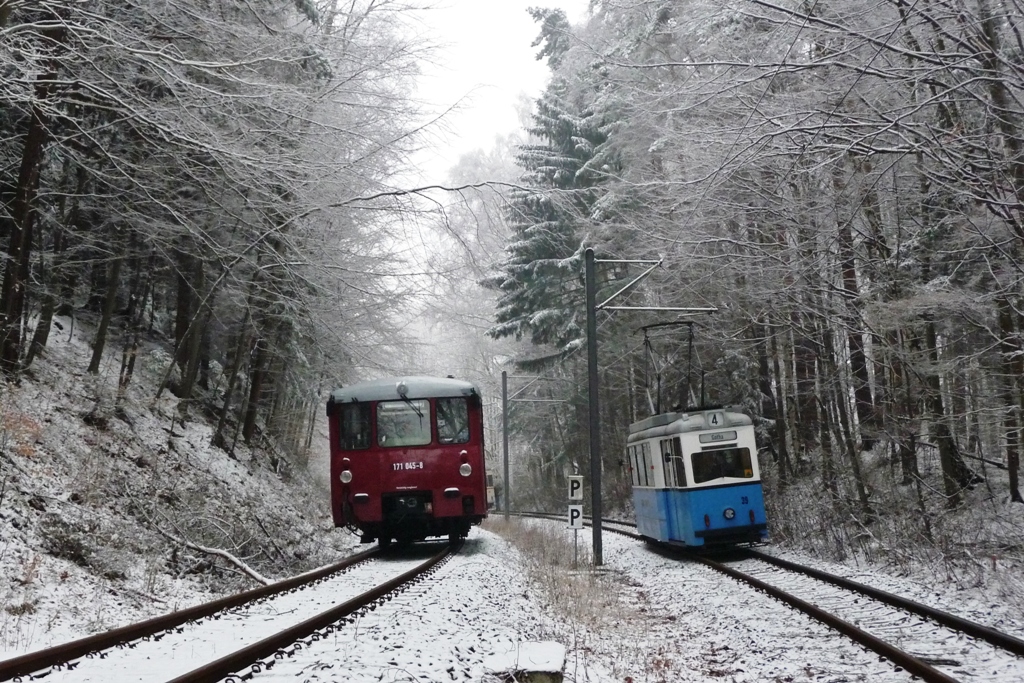 Tw 39 und EBS 772 345 zwischen Reinhardsbrunn und Schnepfenthal, 25.01.2014, (4), (C) Quaß