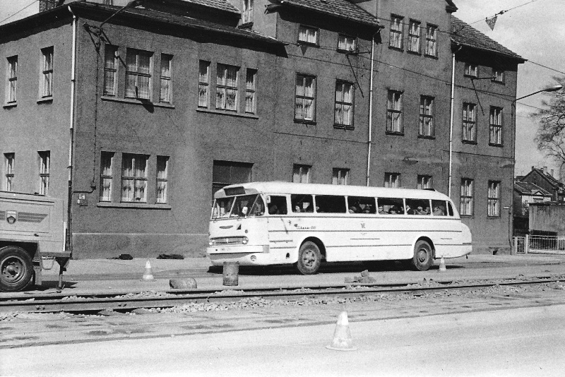 Ikarusbus 66 als SEV Linie 1 in Gotha Huttenstraße, 1977, (C) P. Kalbe
