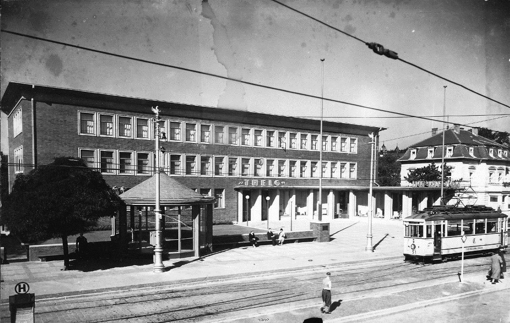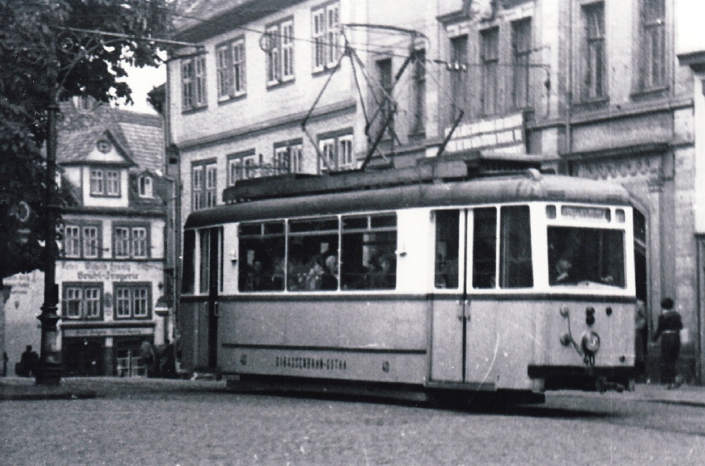 Tw 51, Gotha Hbf (im Hintergrund Theleg Verwaltungsgebäude, ca. 1938, (c) Bräunlich, Slg. P. Kalbe