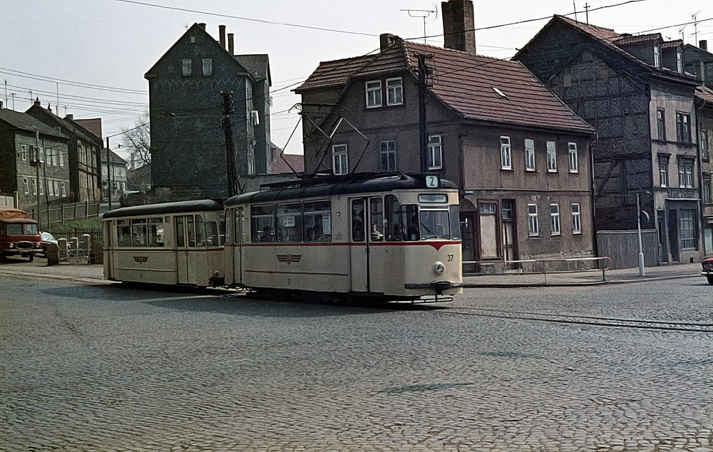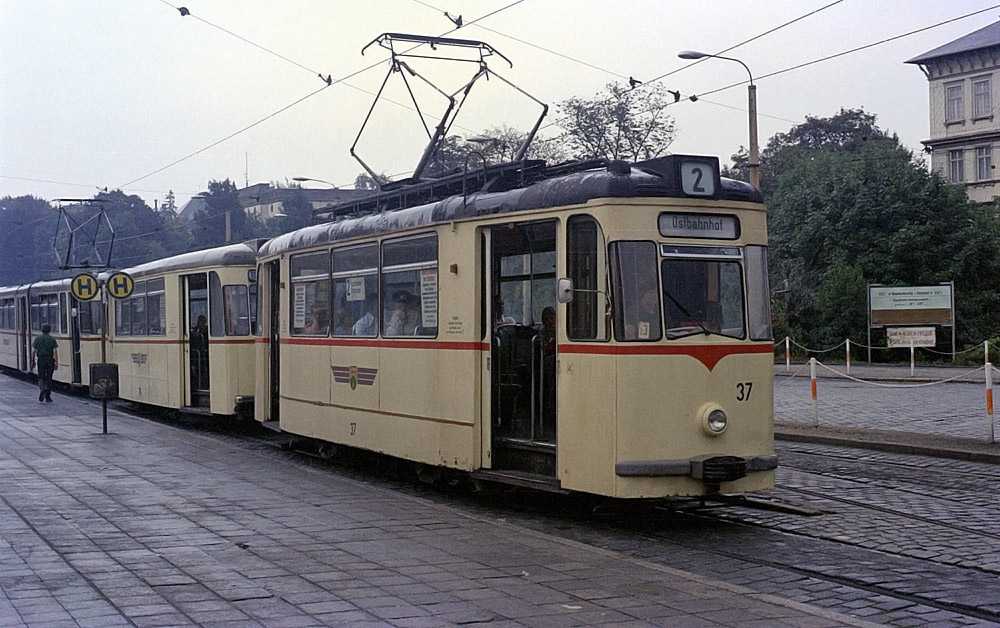 Tw 37 mit Beiwagen, Gotha Bahnhofstraße, August 1976, (C) P. Kalbe