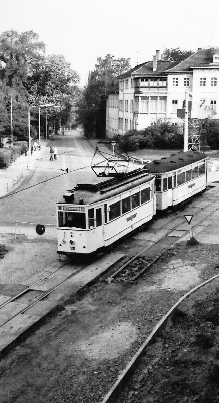 Tw 55 mit Bw 84, Gotha Karl-Marx-Straße (heute Friedrichstraße), 1974, (C) P.Kalbe