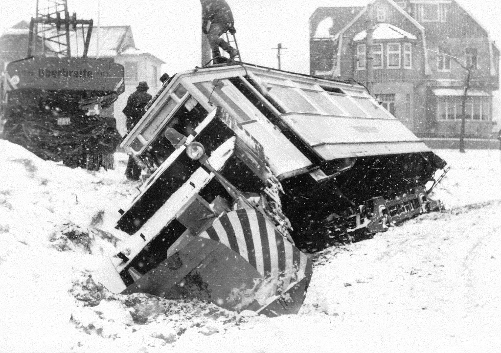 ATw 006 (ex Eisenach 42 II, ex Erfurt 92) bei der Überführung nach Erfurt, hier im Ortsteil Gotha-Siebleben, 25.01.1980, (C) J. Gruß, Slg. P. Kalbe