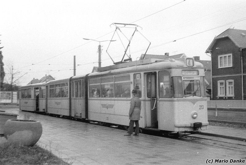 G4-65 Nr. 202 Linie 1 auf der Fahrt zum Hbf (der Wagen hat überlebt, war zuletzt in Naumburg?)