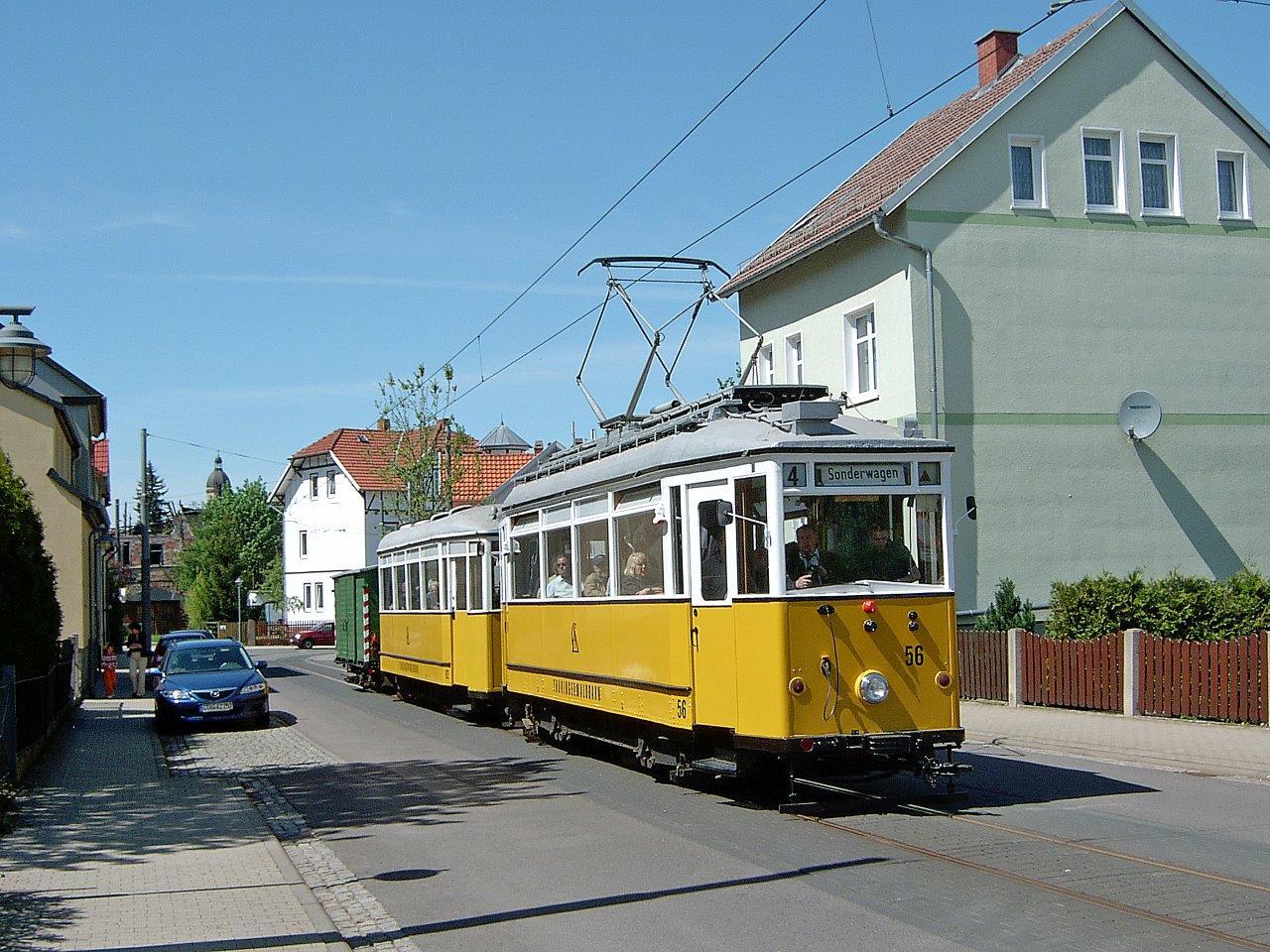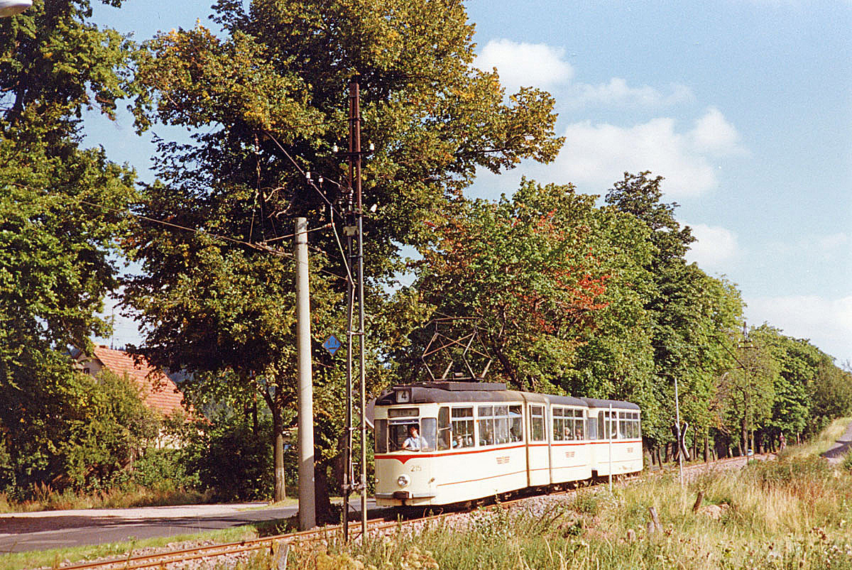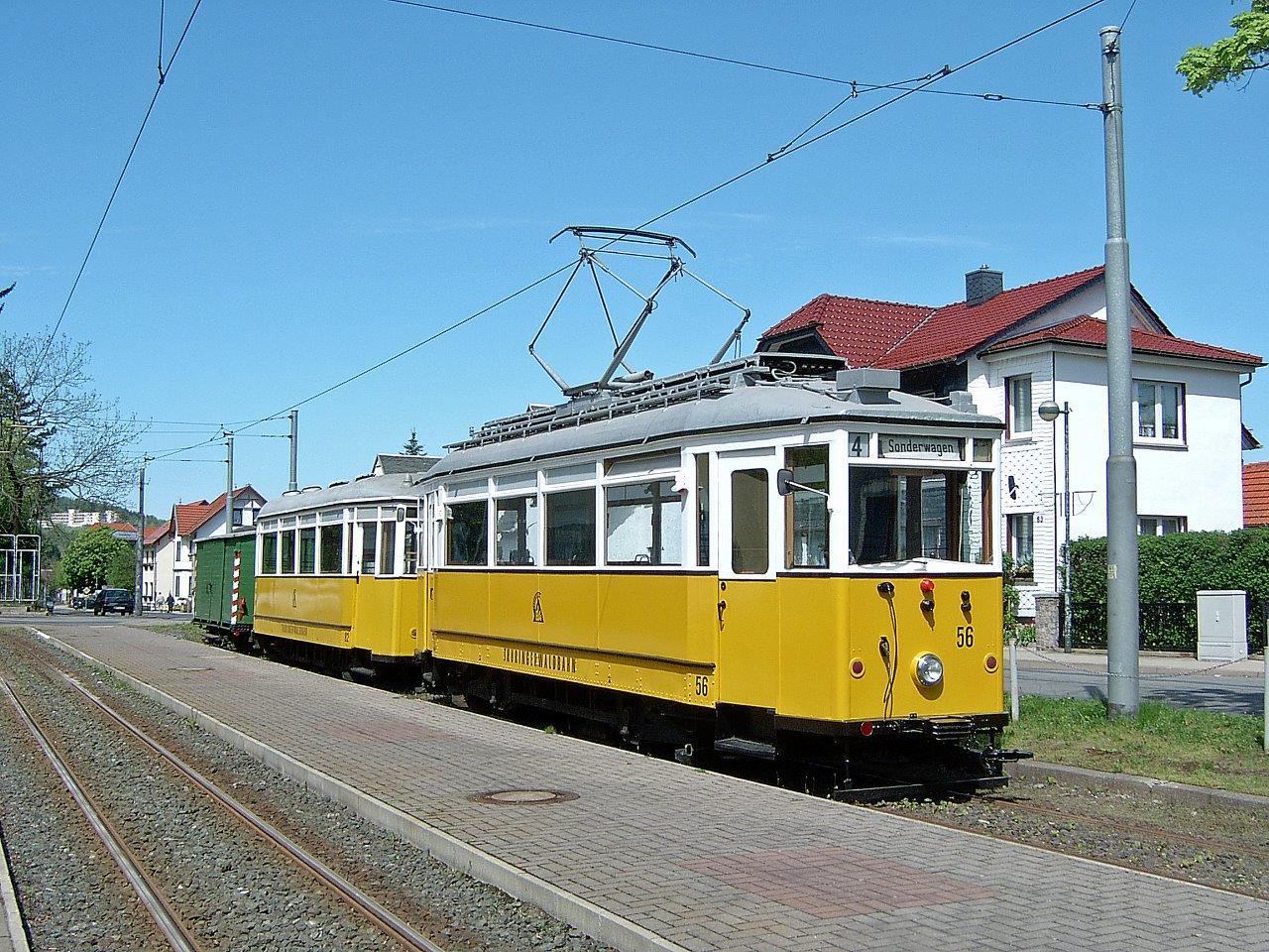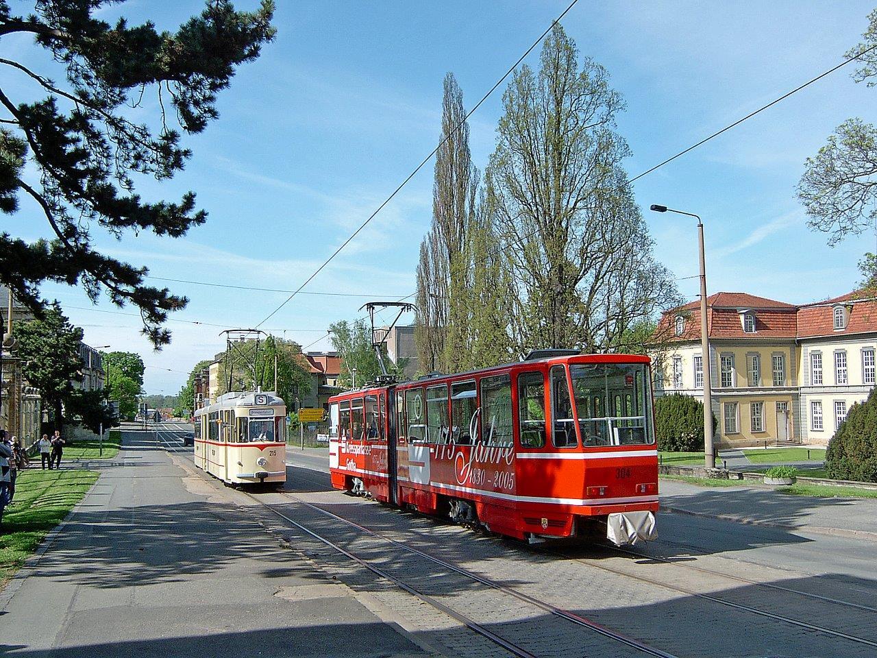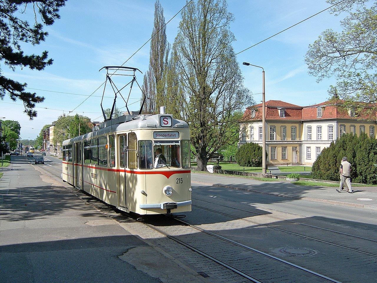 Der Gotha-Gelenktriebwagen G4 215, in Teil 1 noch im Linienbetrieb, jetzt als Museumszug