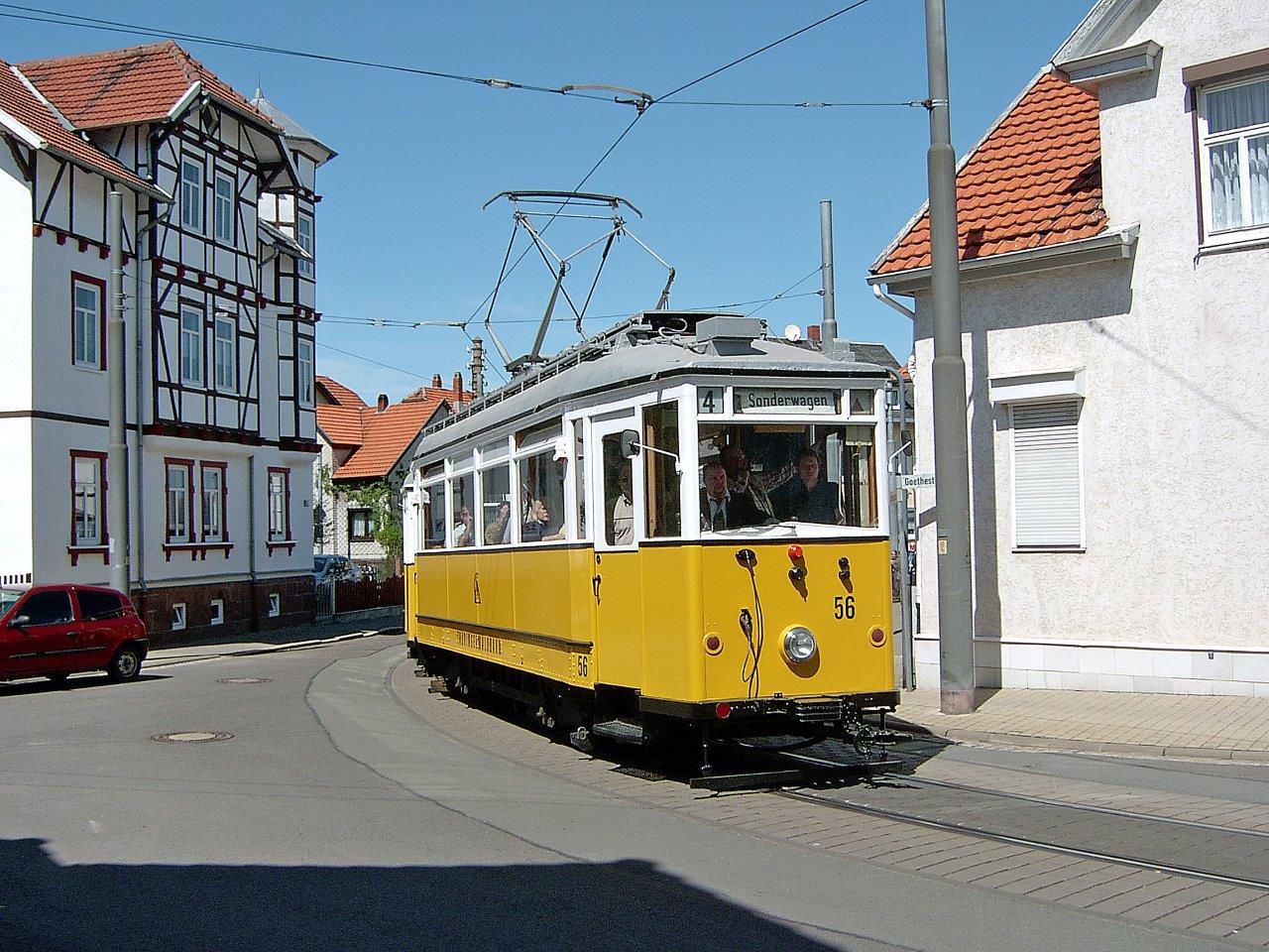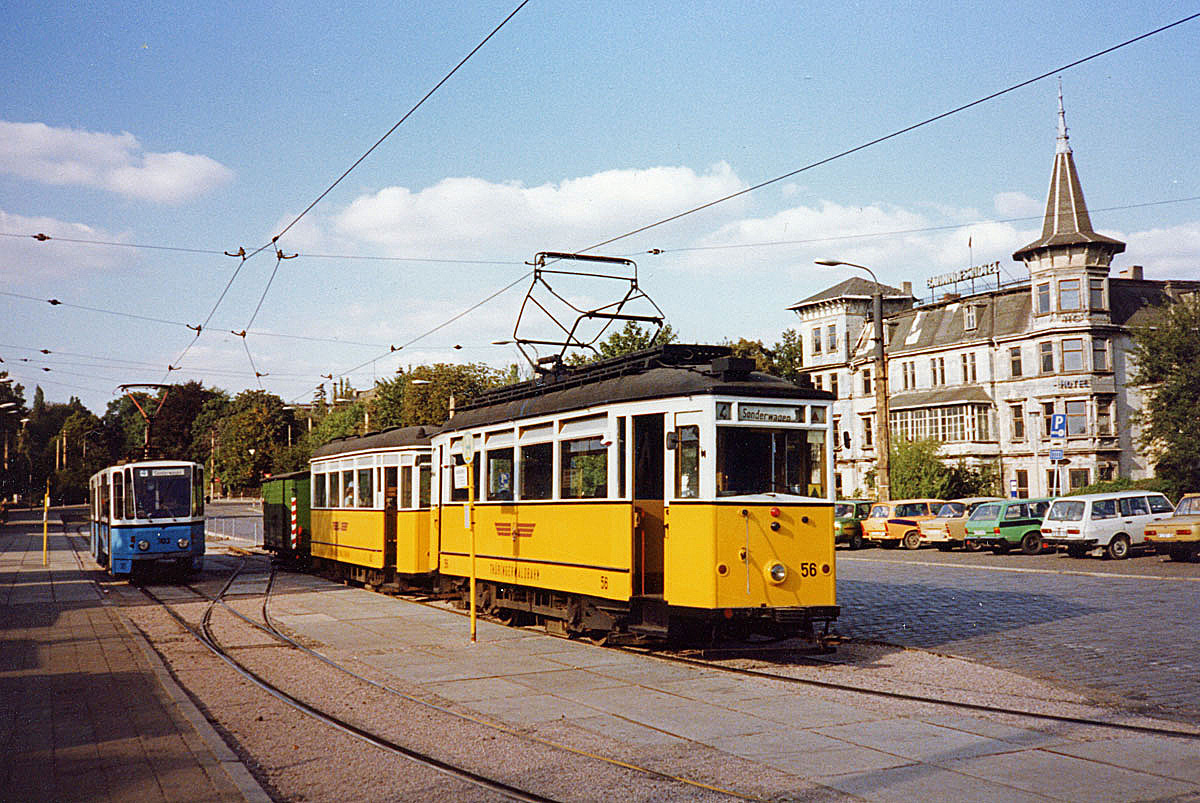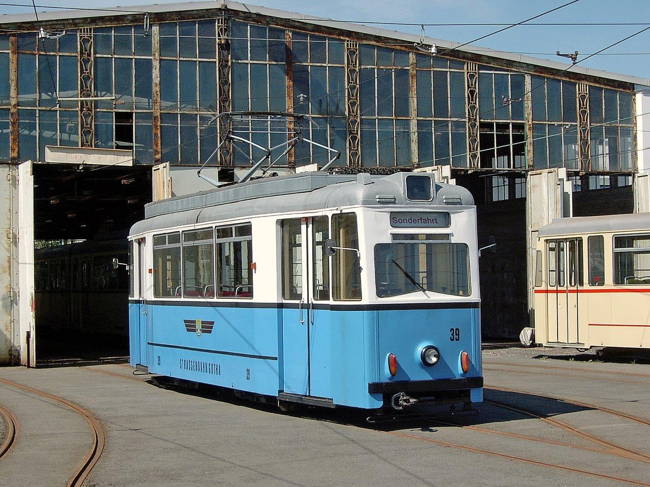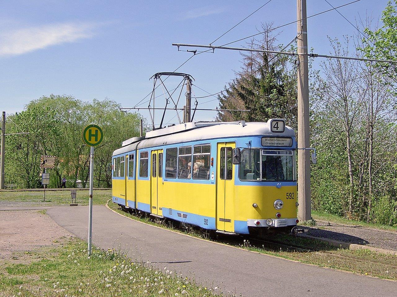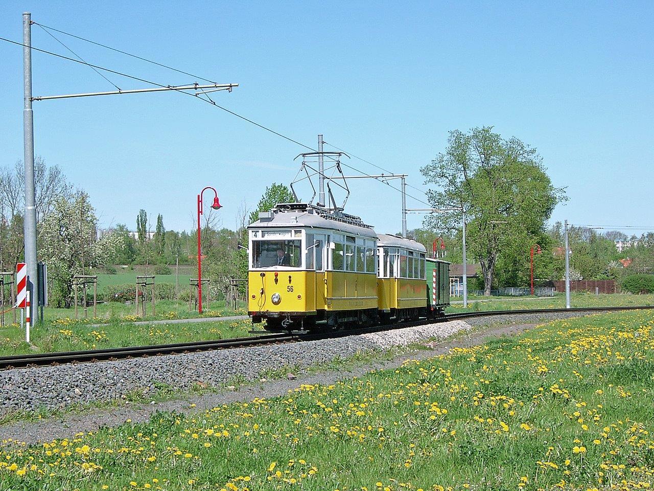 Der Gotha-Gelenktriebwagen G4 215, in Teil 1 noch im Linienbetrieb, jetzt als Museumszug