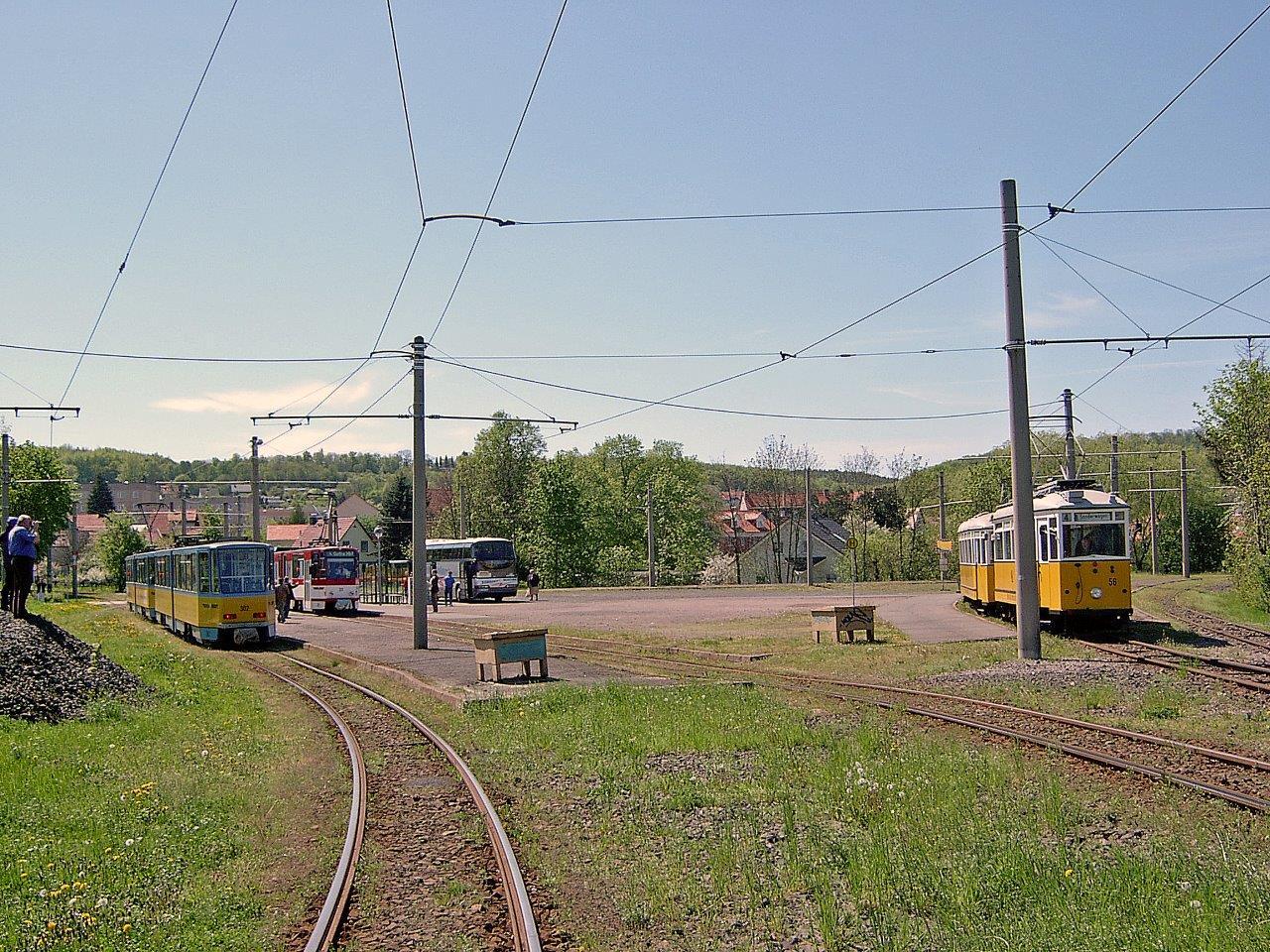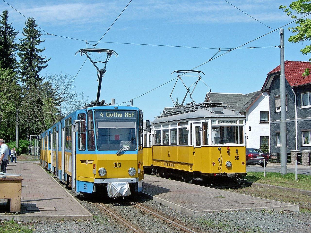 Der Traditionszug und Tatra TW 303 in Tabarz. Ironie, dass ich 15 Jahre später dieselben Fahrzeuge durch Zufall wieder hier aufgenommen habe.