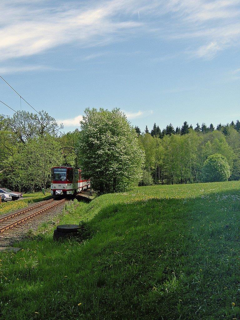 Im sicheren Abstand folgte auch Tw 303 (CKD 1981) in Waldbahnausführung., welcher 8 Jahre später modernisiert wurde.