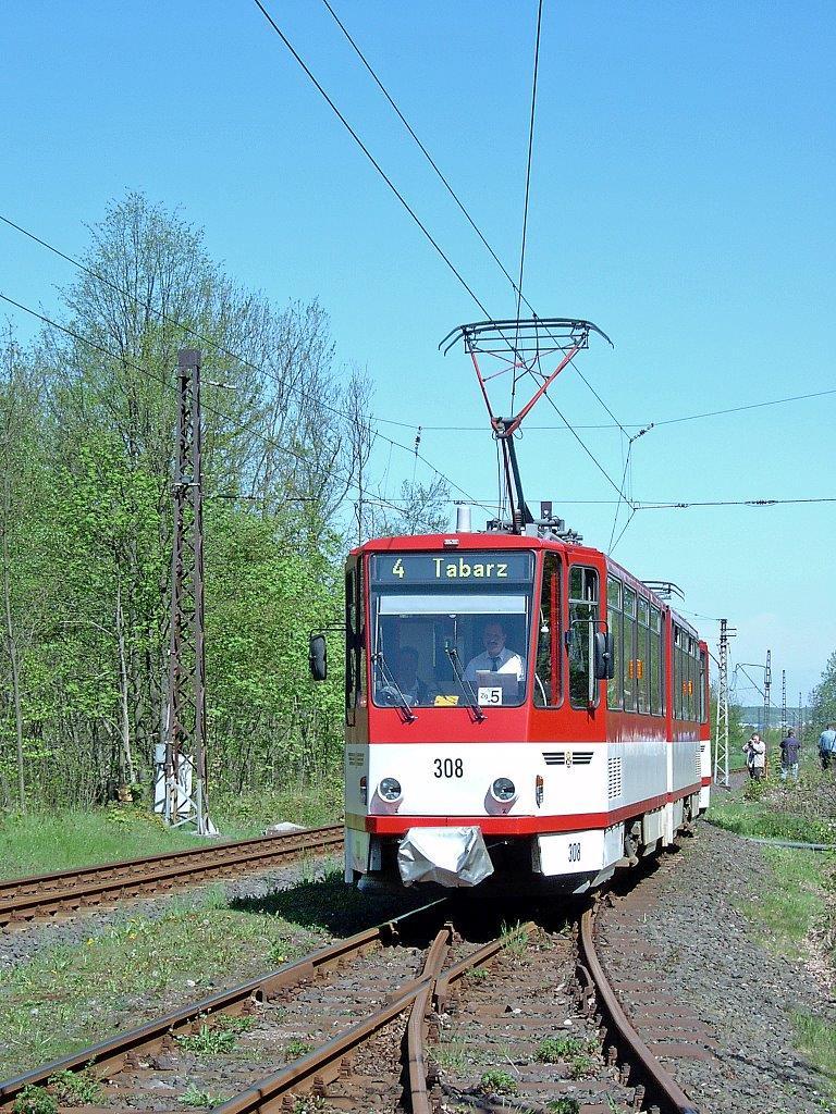 Beginnen wir in der Haltestelle Boxberg: KT4D Traktion bestehend aus TW 310 (CKD 1990, ex Erfurt 540). Dieser Wagen wurde erst am 16.04.2005 nach einer Teilmodernisierung in Betrieb genommen, im September wurde das Fahrzeug dann schon nach einen Unfall abgestellt und verschrottet.