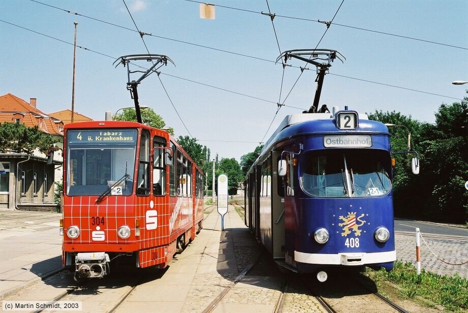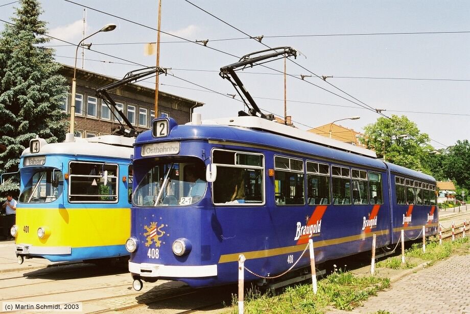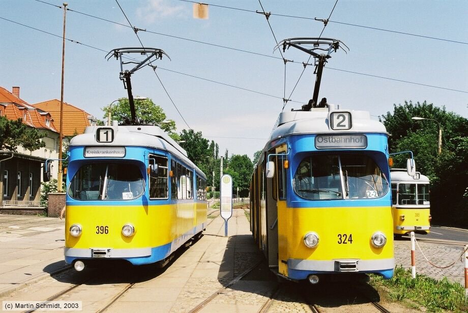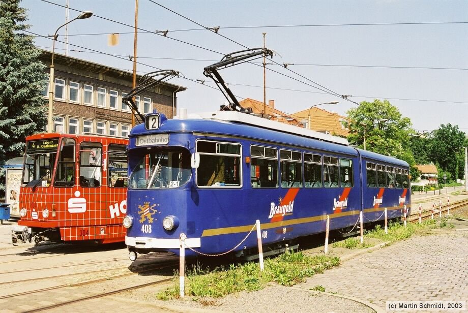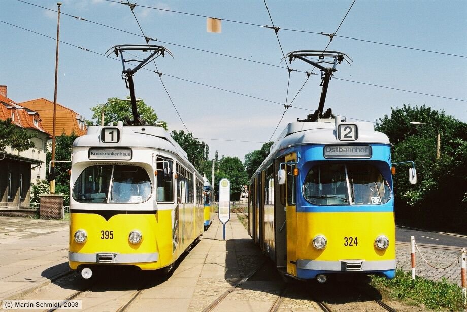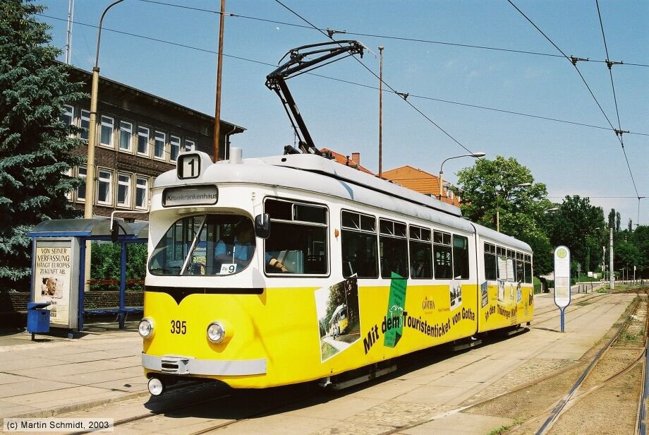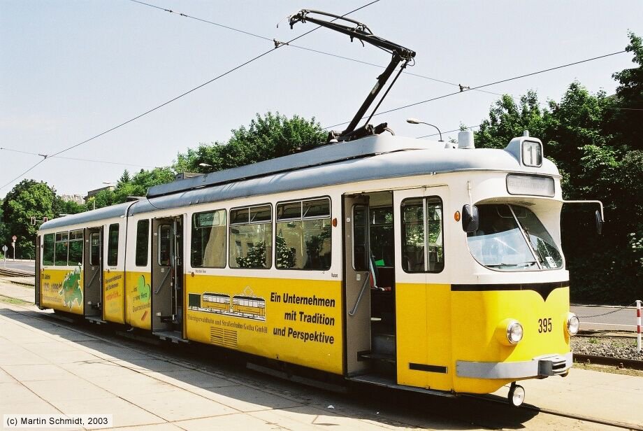 Am 5. Mai 2003 war ich ein paar Stündchen in Gotha und habe das schöne Wetter zum Fotografieren genutzt. Die Tatra-Fraktion verzeihe mir auch, daß ich mich vorwiegend den ehemaligen Mannheimer Düwags gewidmet habe 🙂